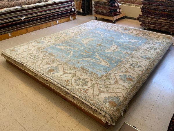 This beautiful oushak, perfect to tie any transitional style room together, features lt. blue and rust colors. The rug is 8ft. x 10ft. in size. This rug has been professionally cleaned and has passed our rigorous Tiftickjian Quality Inspection. This ensures the rug is durable, pristine, and a great conversation piece. We take care of all the details so your investment is worth every penny with quality service that ensures customer satisfaction – meaning you can buy with confidence! Available to ship anywhere in the USA.